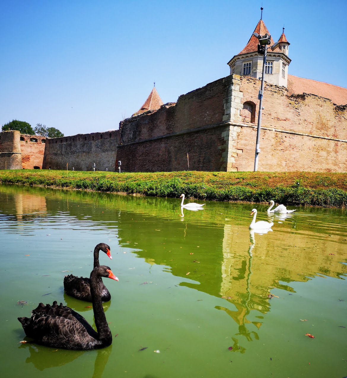 a medieval castle surrounded by a moat with swimming black swans. what's not to love? Plus, fashion footwear!