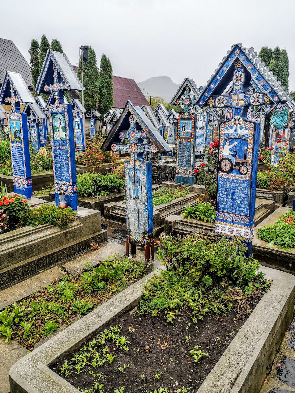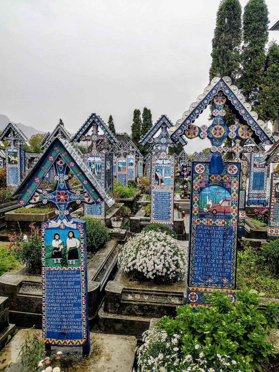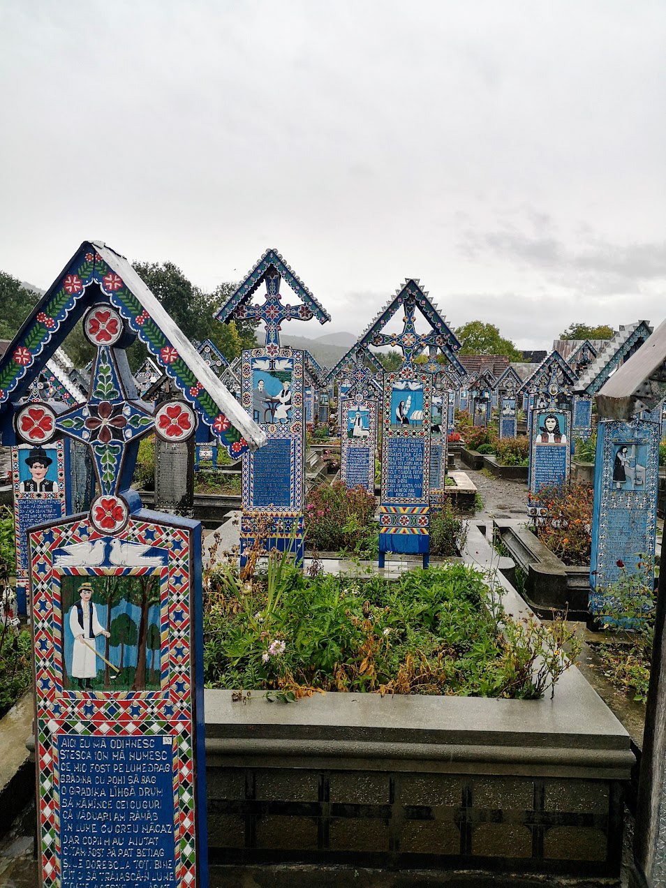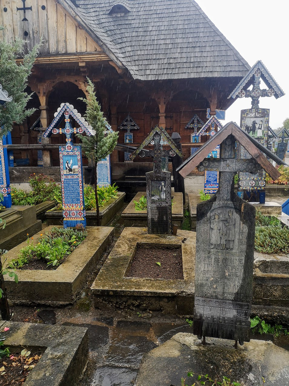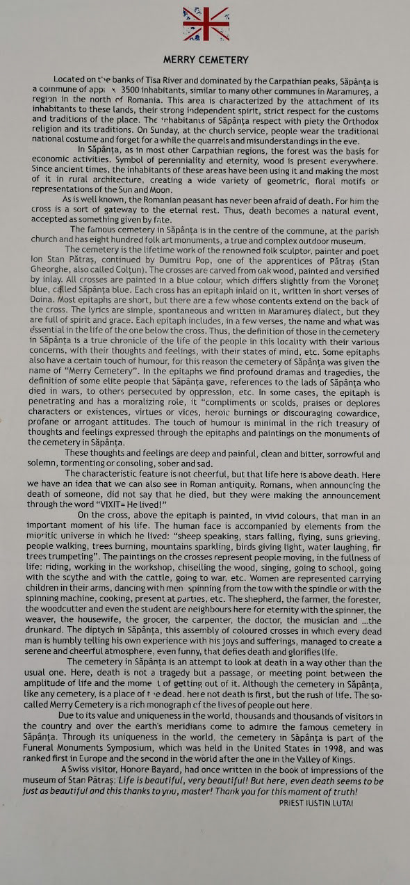 Odd place. The Merry Cemetery is filled with hand-carved wooden "tombstones" depicting humorous things about the deceased in each grave. there is also a huge traditional Romanian wooden church nearby.