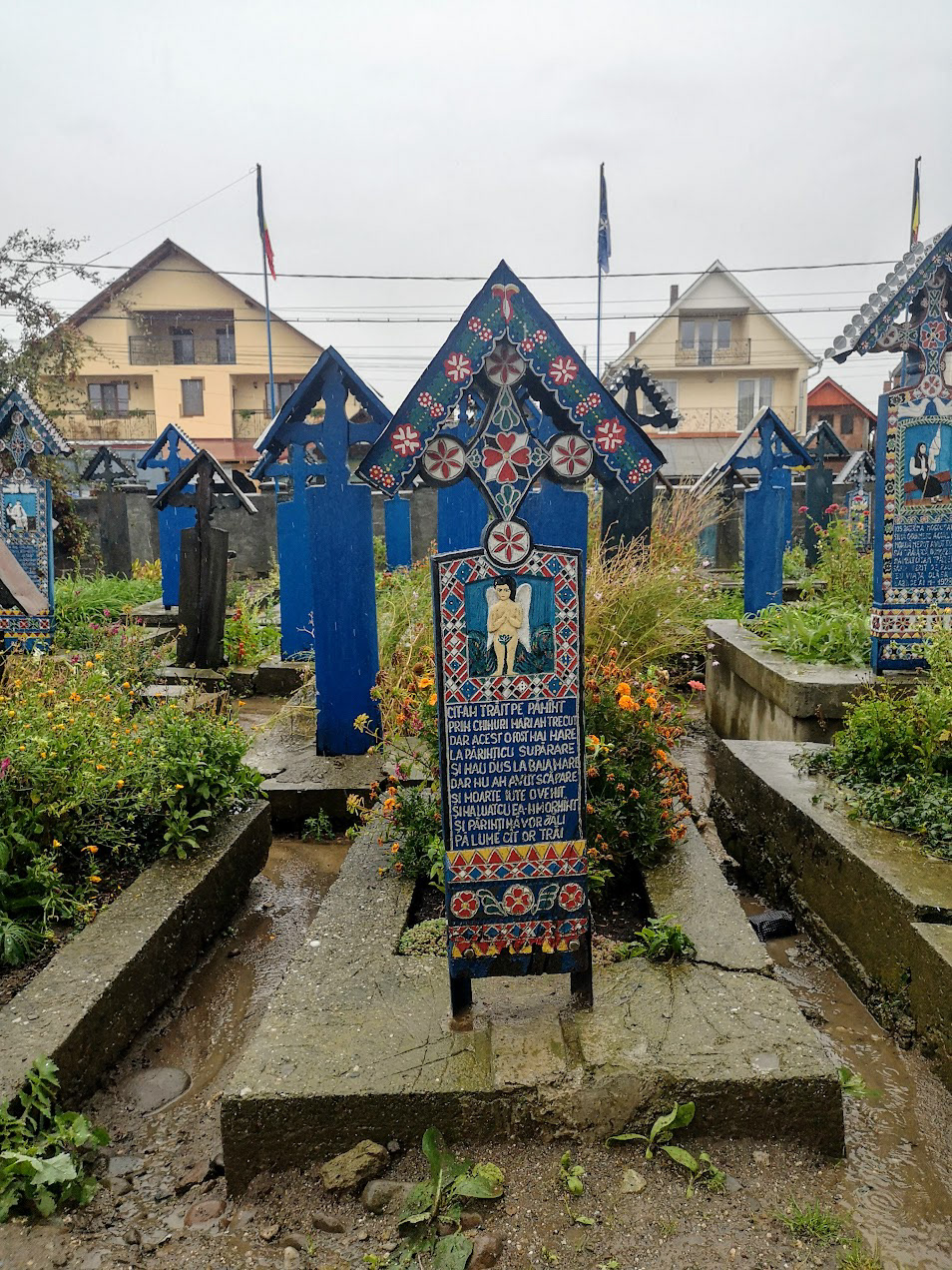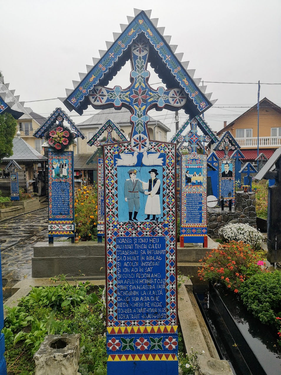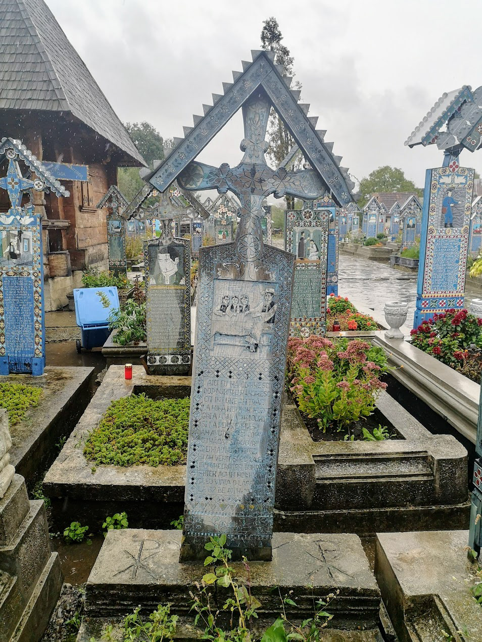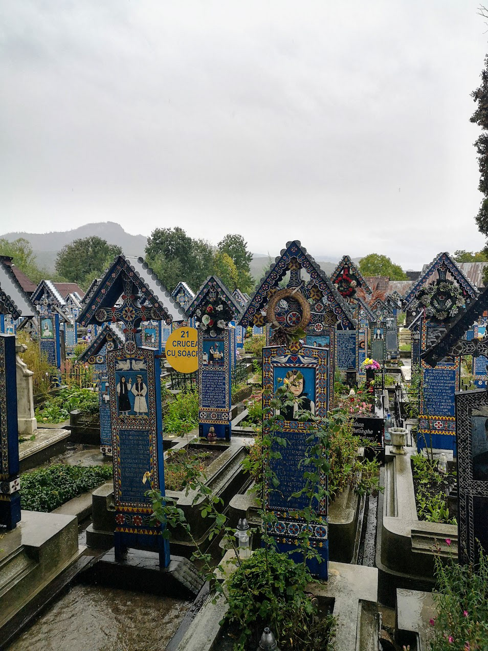 Odd place. The Merry Cemetery is filled with hand-carved wooden "tombstones" depicting humorous things about the deceased in each grave. there is also a huge traditional Romanian wooden church nearby.
