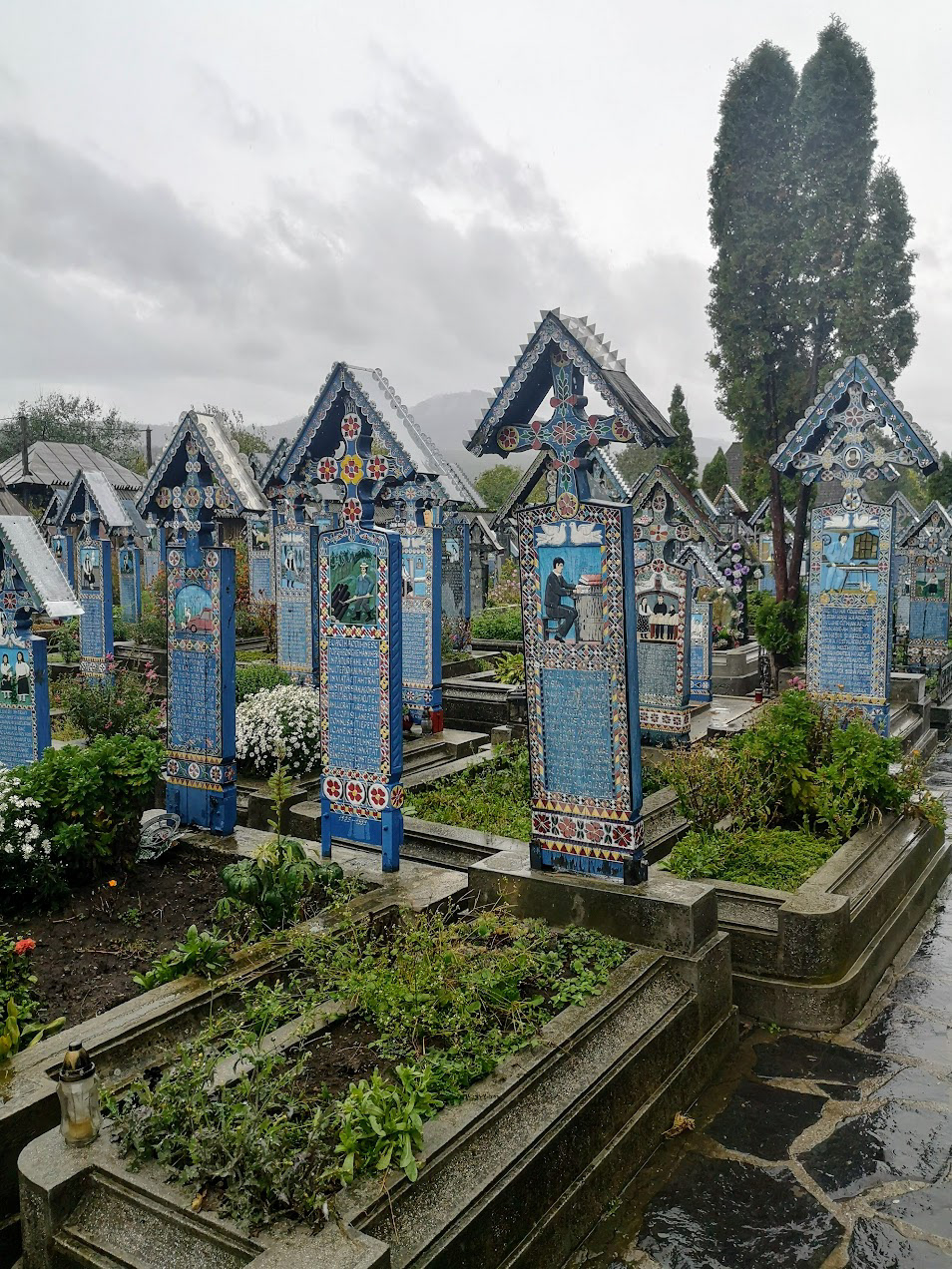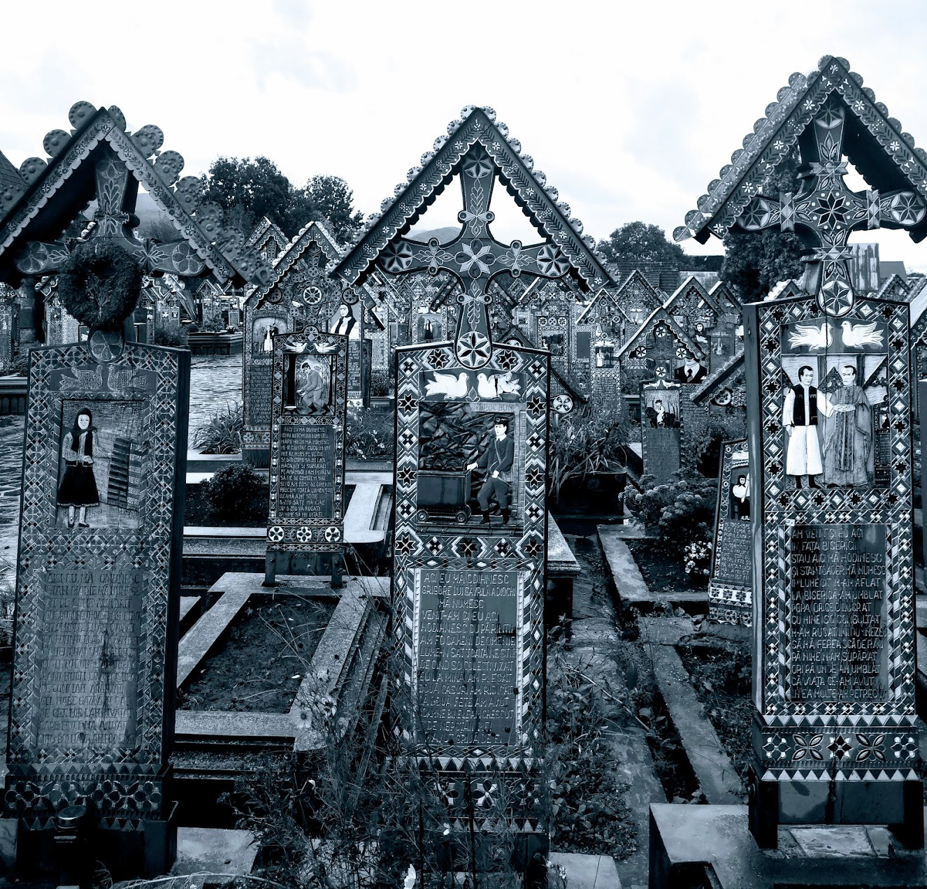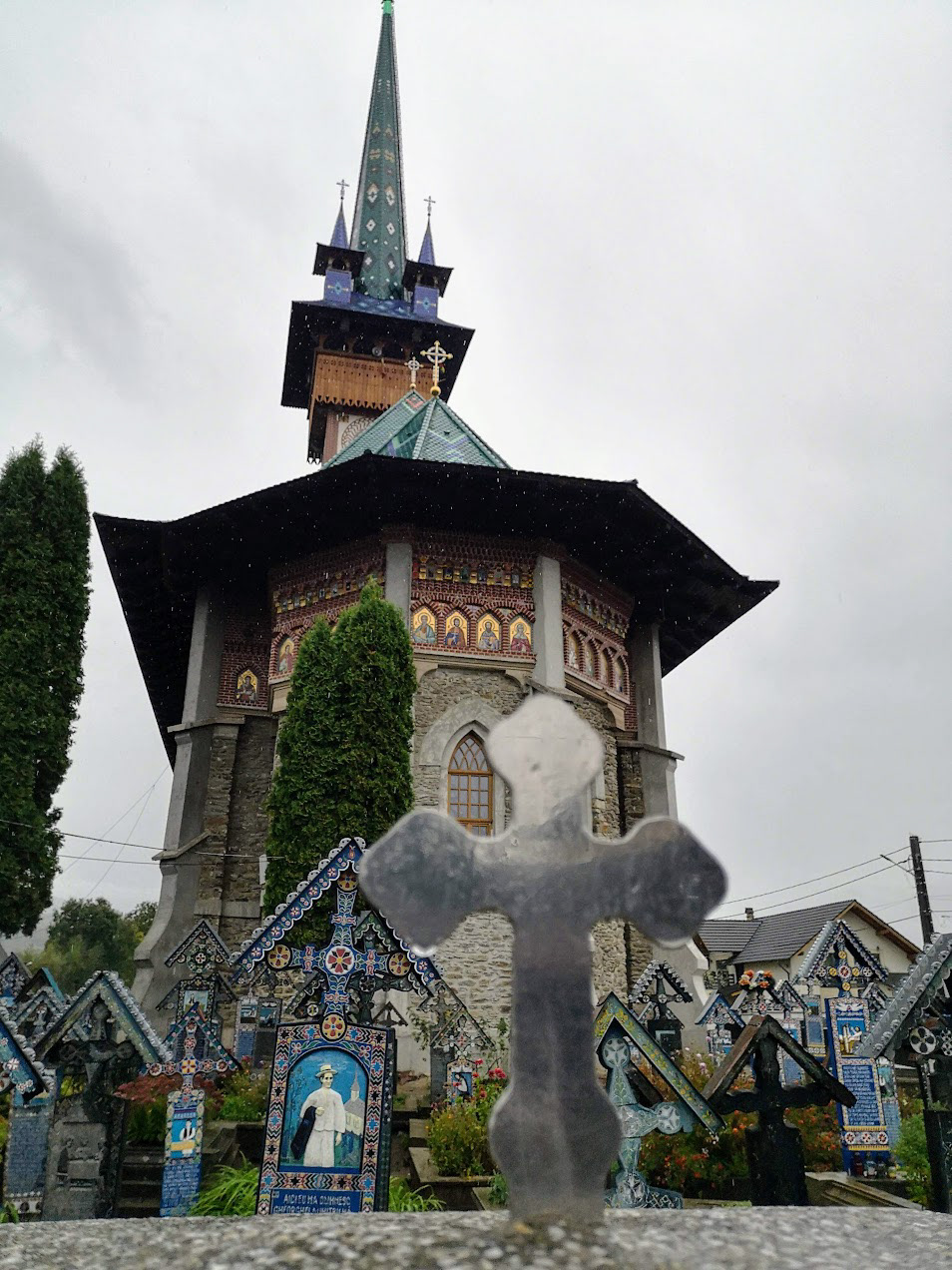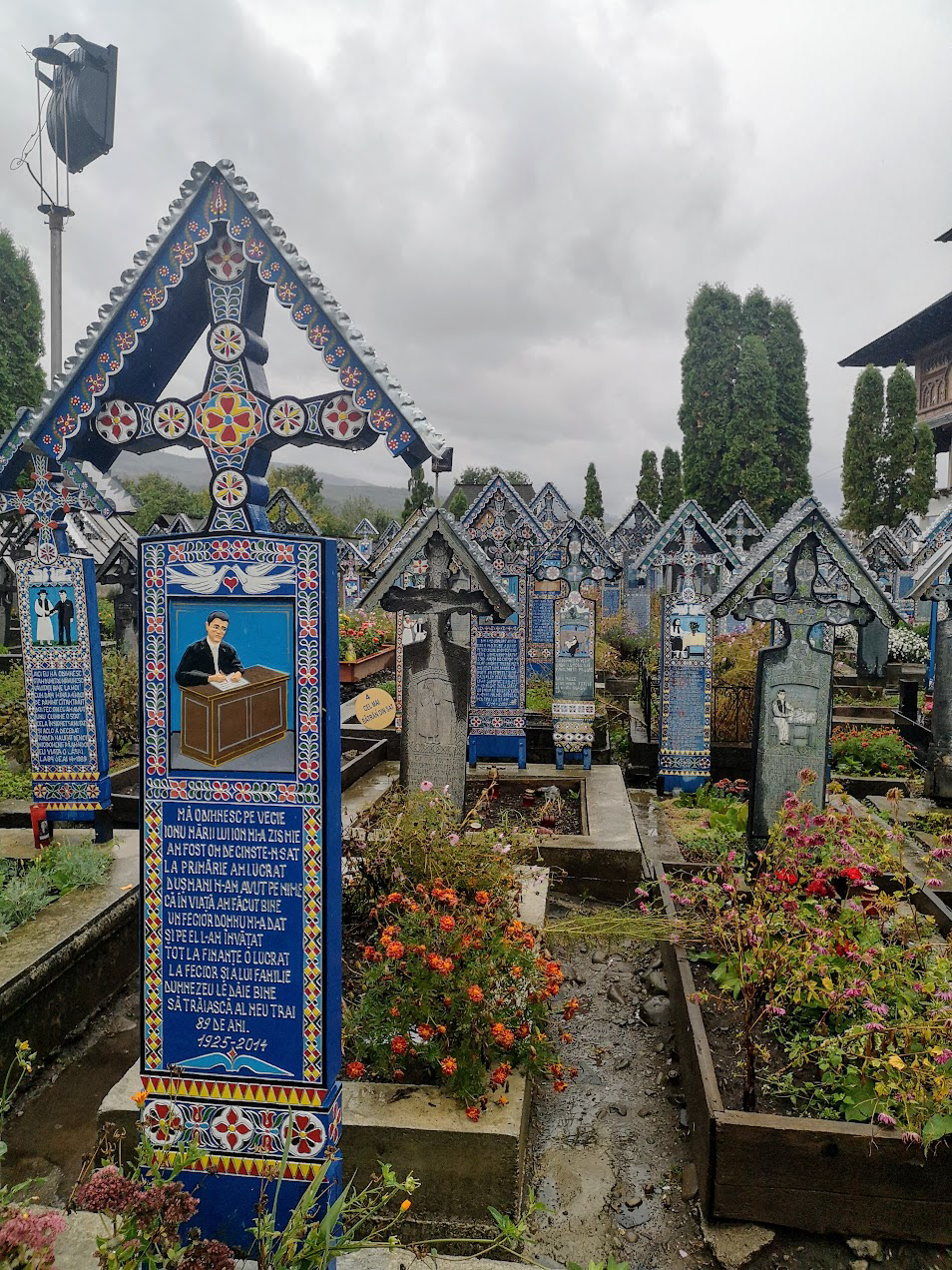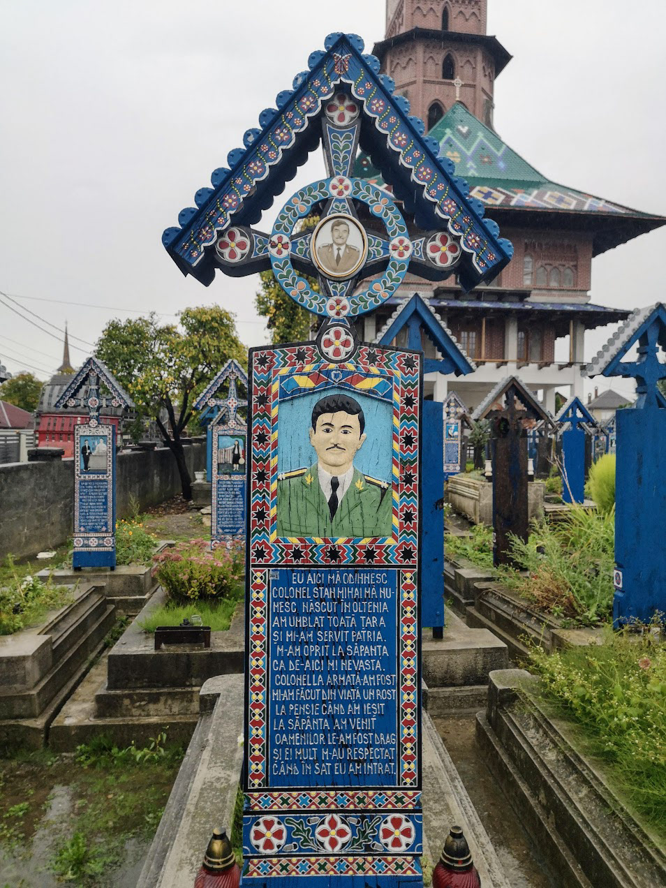 Odd place. The Merry Cemetery is filled with hand-carved wooden "tombstones" depicting humorous things about the deceased in each grave. there is also a huge traditional Romanian wooden church nearby.