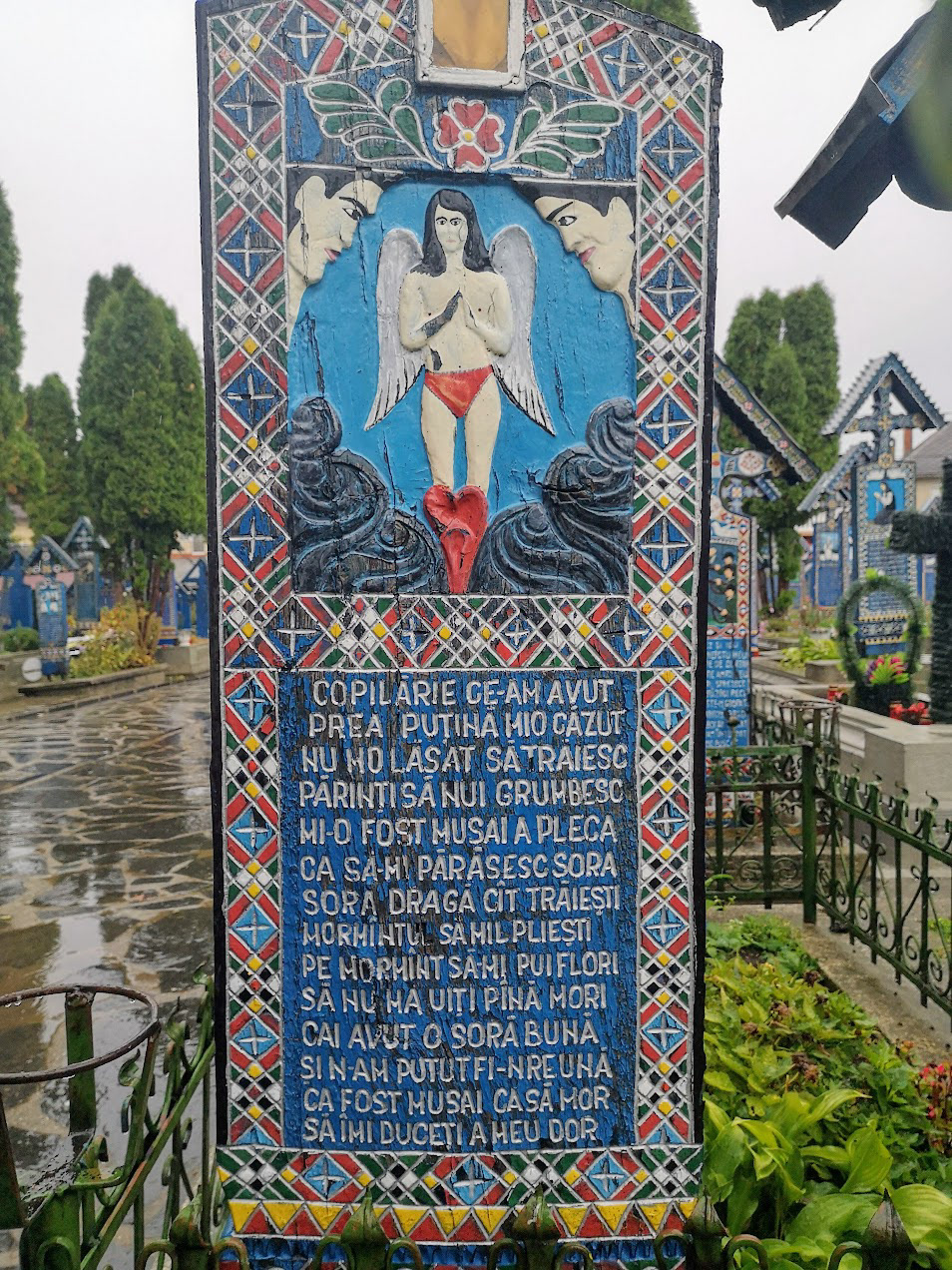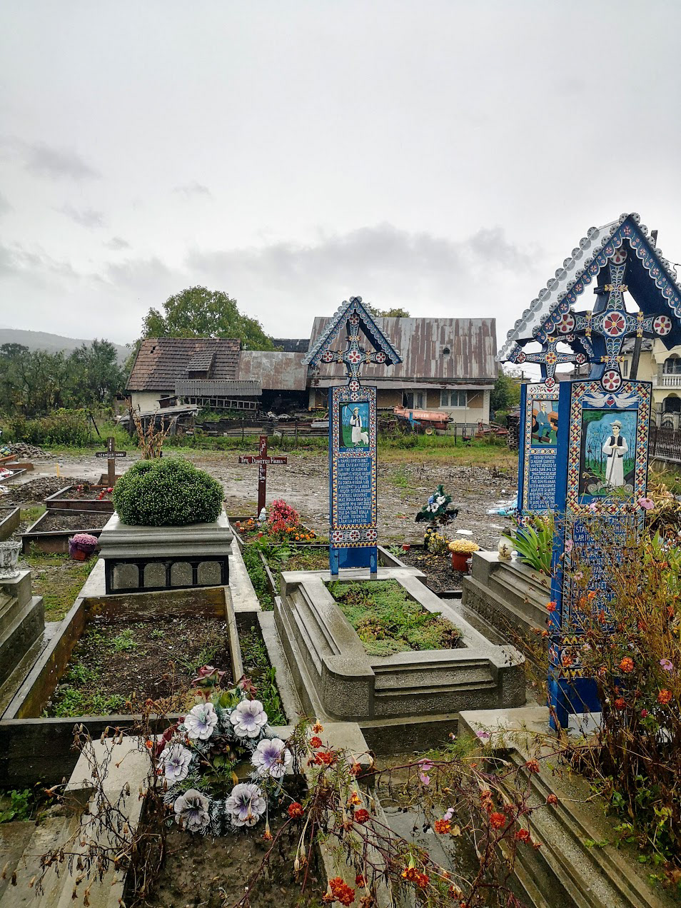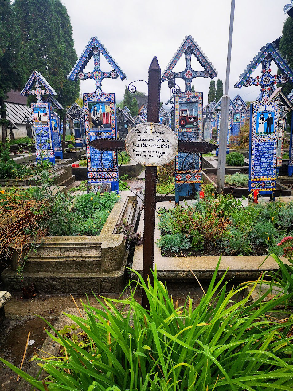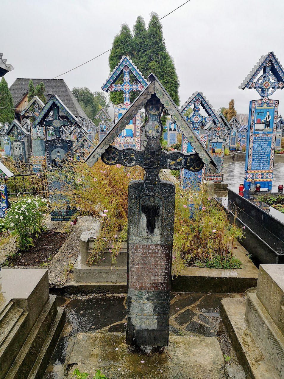 Odd place. The Merry Cemetery is filled with hand-carved wooden "tombstones" depicting humorous things about the deceased in each grave. there is also a huge traditional Romanian wooden church nearby.